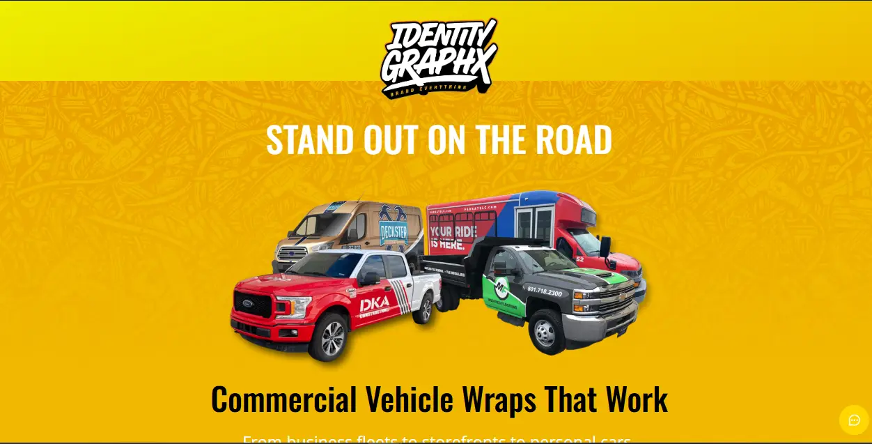 A modern, branded website for Identity Graphx, built to showcase their vehicle wrap services and establish a strong, trustworthy online presence.